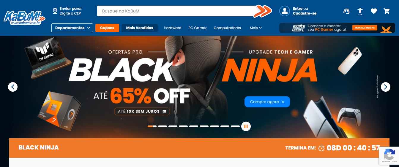 A Kabum é conhecida por sua vasta seleção de produtos, incluindo placas de vídeo, processadores, memórias RAM, SSDs, gabinetes, fontes de alimentação, monitores e muito mais. A loja também oferece promoções frequentes, descontos exclusivos e condições especiais de pagamento, tornando-se uma opção atraente para quem busca montar ou atualizar seu computador.
