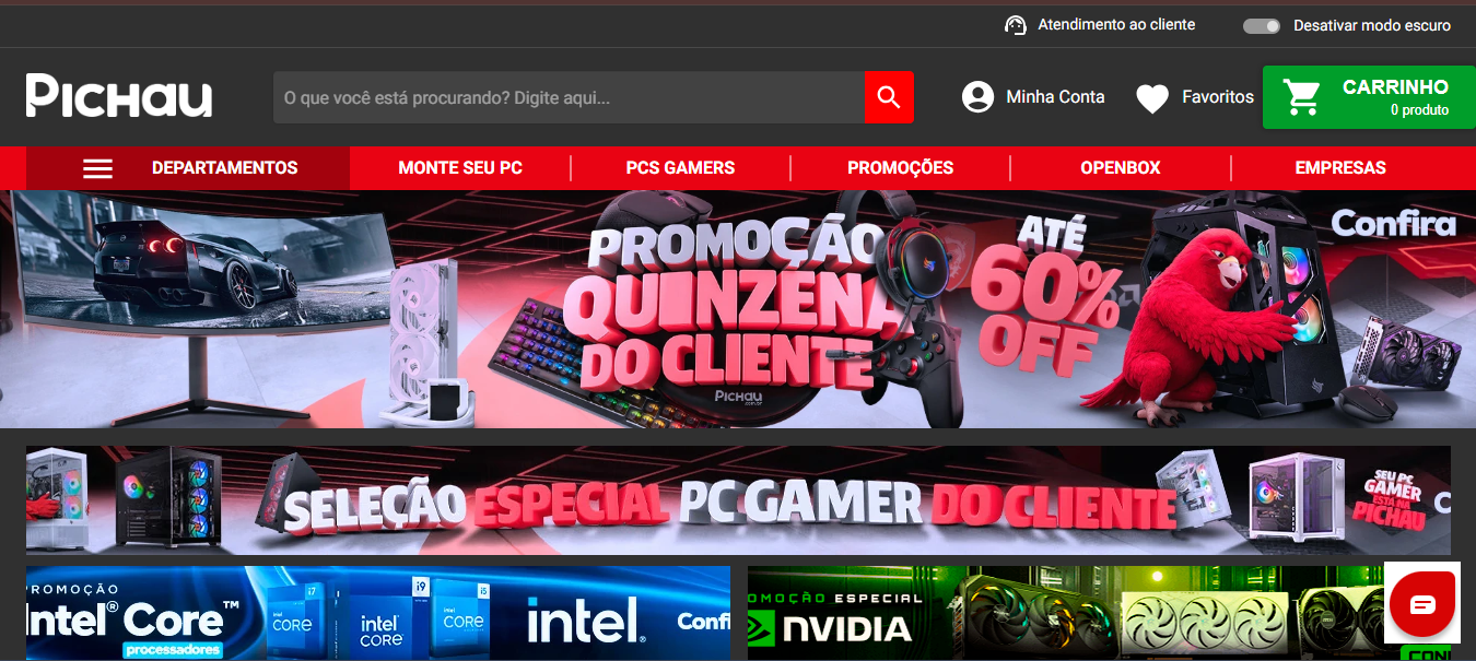 A Pichau é conhecida por sua vasta seleção de produtos, incluindo placas de vídeo, processadores, memórias RAM, SSDs, gabinetes, fontes de alimentação, monitores e muito mais. A loja frequentemente oferece promoções exclusivas, descontos especiais e condições facilitadas de pagamento, tornando-se uma opção atraente para quem busca montar ou atualizar seu computador.